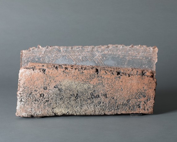 Raku clay and glass paste - Piece in two parts27 x 49 x 8 cm