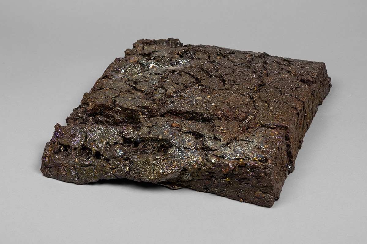 Blend of red clay and volcanic soil.Small additions of coarse sand, glass, and granite.Firing temperature: 2170–2210 °F.Reduction glaze: 1800 °F. Luster