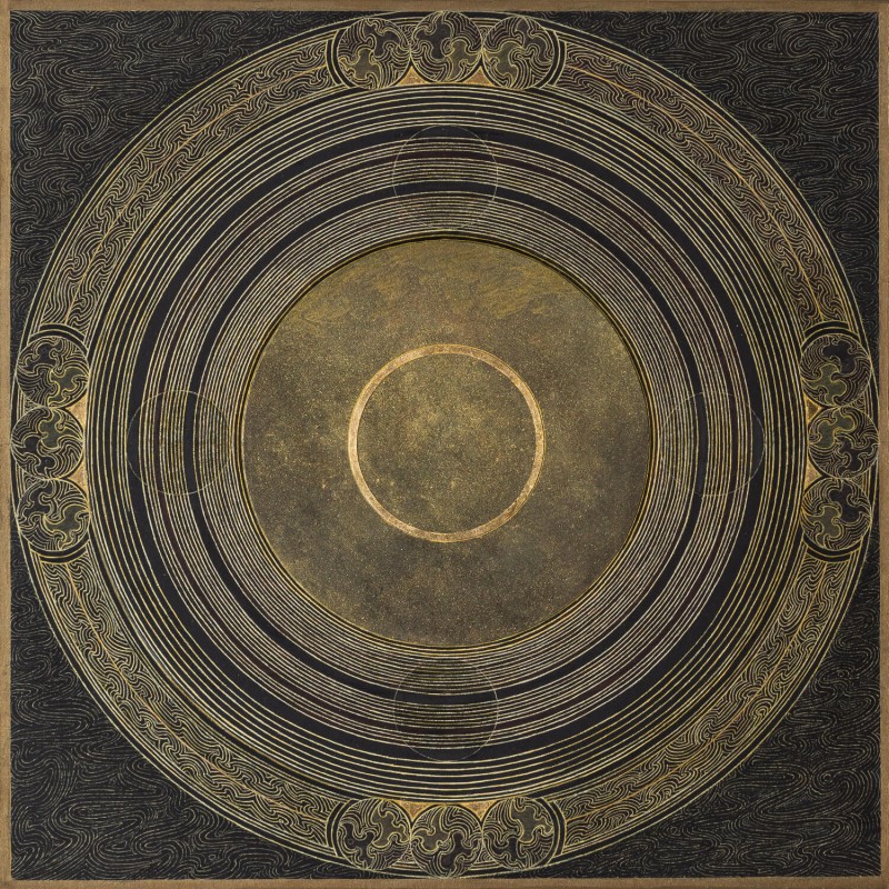 Huile, pastel à l'huile, feuille d'or et bronze sur papier marouflé sur bois
