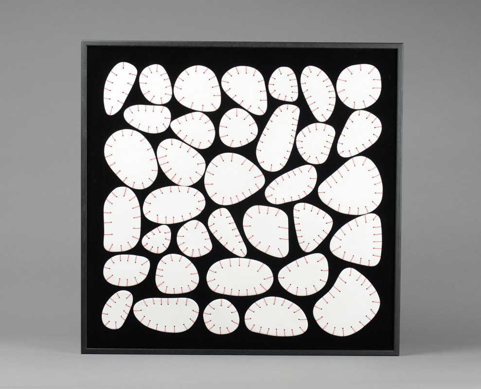 Porcelaine et fil textile - Cadre bois