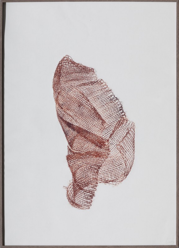 Estampe d'une matrice tissée en fibres de jute et de coton tissées enduite d'encres d'impression et passée sous presse sur un papier Fabriano Rosapina de 280g